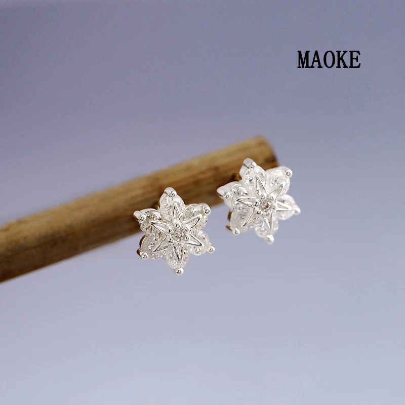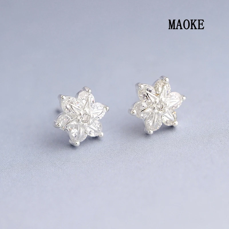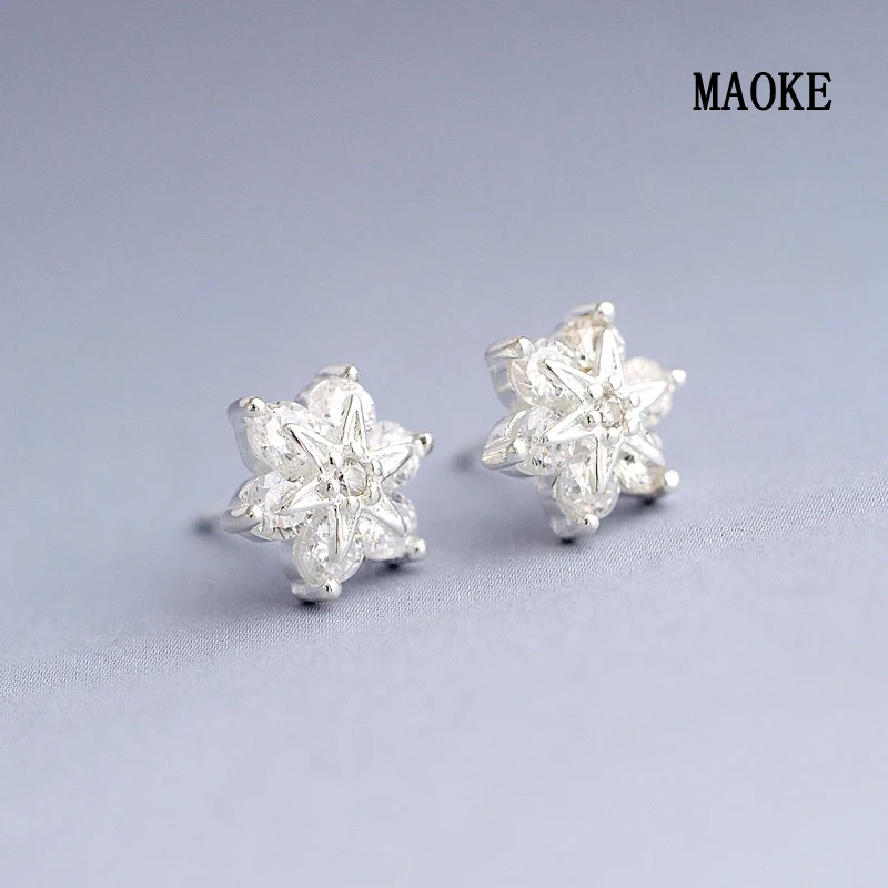 Promotions 925 Sterling Silver Snowflake Earrings Fashion Wild Star Zircon Fashion Jewelry for Wome