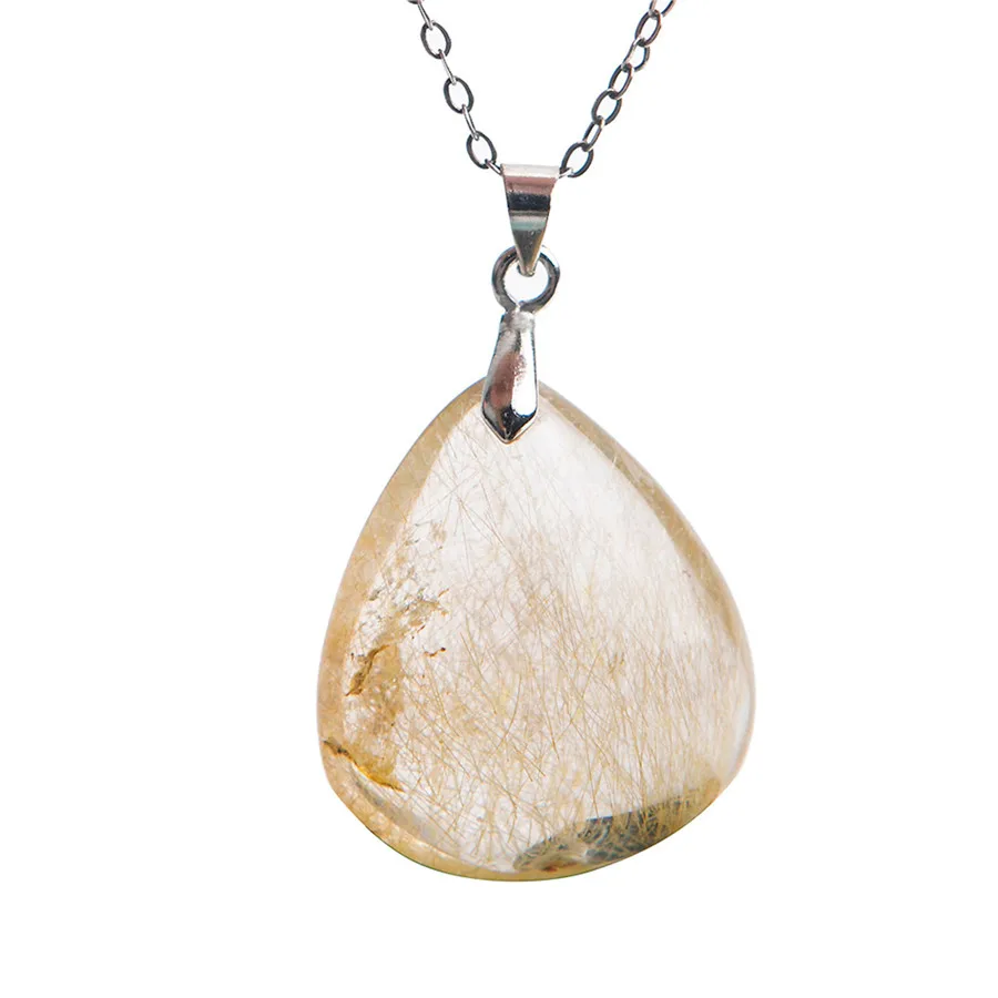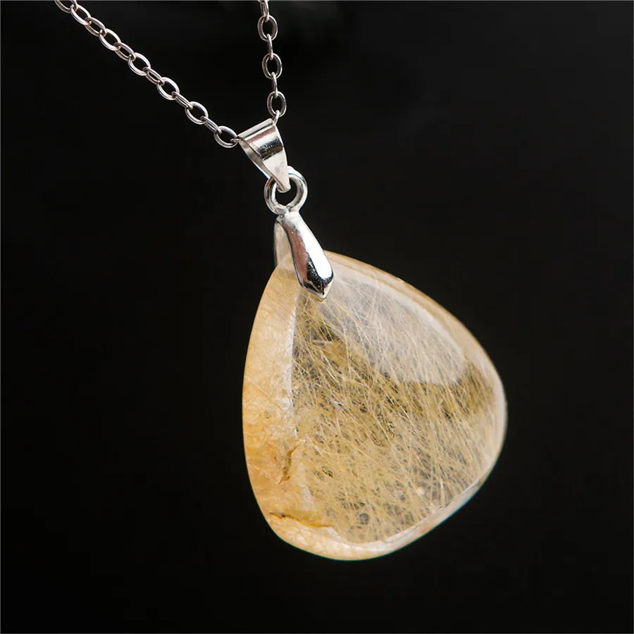 HIGH QUALITY Genuine Natural Titanium Rutilated Crystal Pendant Gold Water Drop Bead Pendants Necklace For Women