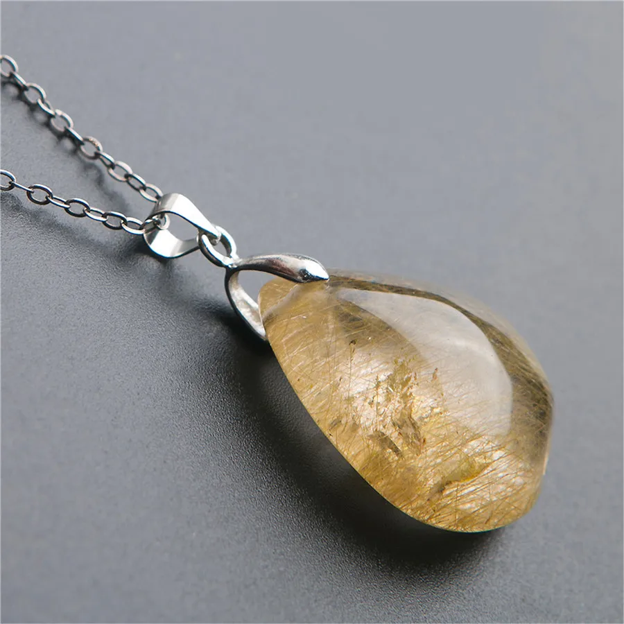 Genuine Natural Titanium Rutilated Crystal Pendant Gold Water Drop Bead Pendants Necklace For Women