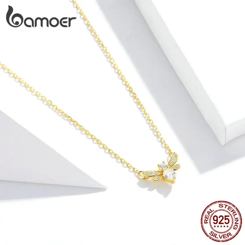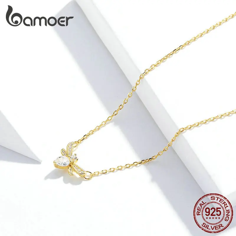 Best Seller Sterling Silver 925 Gold Color Bee Choker Neckalce for Women Clear CZ Statement Jewelry Collier SCN