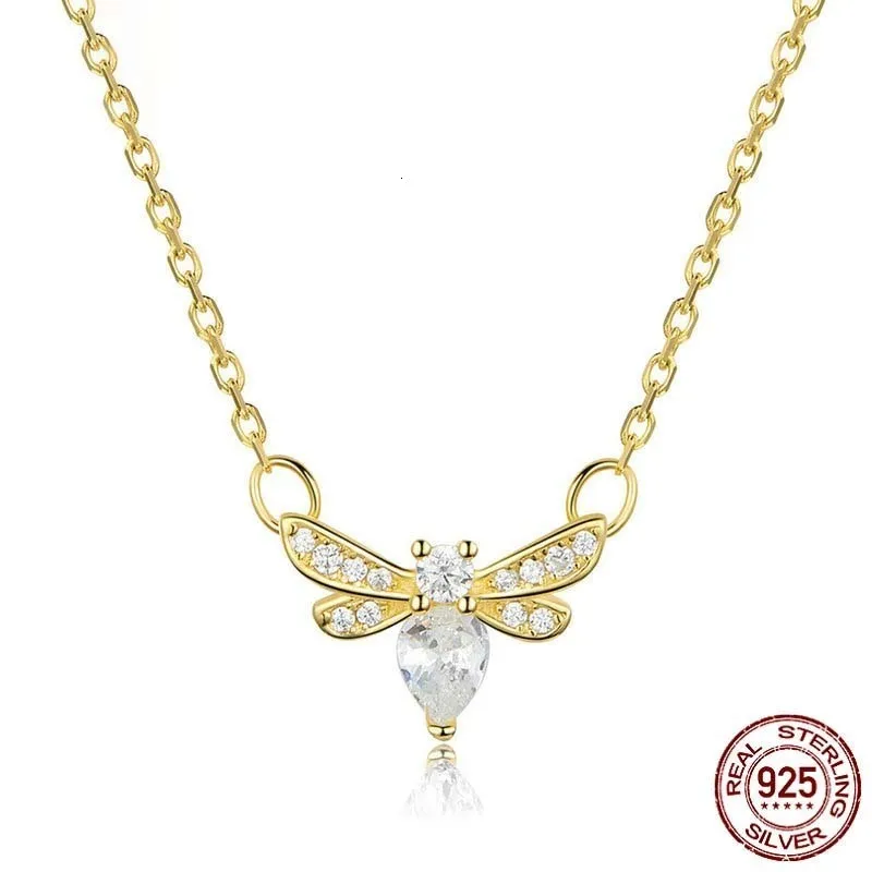 Sterling Silver 925 Gold Color Bee Choker Neckalce for Women Clear CZ Statement Jewelry Collier SCN