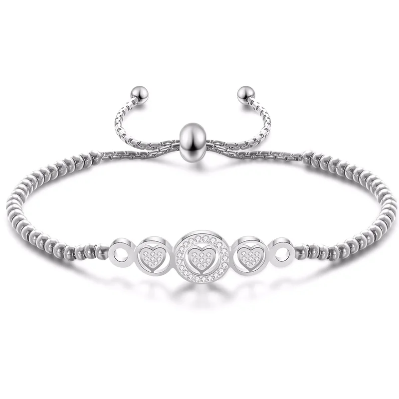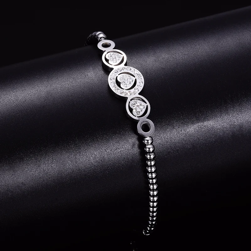 REVIEW TOP SELLER Fashion Jewelry Simple Adjustable Length Dotted Crystal Small Heart Titanium Steel Bracelet Titaniu