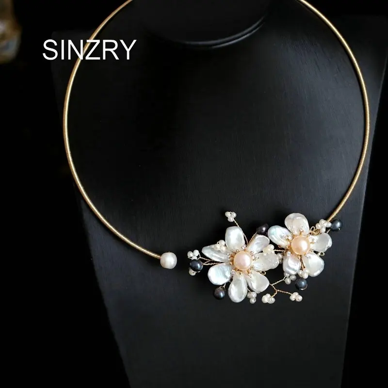 HIGH QUALITY SINZRY original design handmade Baroque freshwater pearl Elegant flower chokers necklace band for W