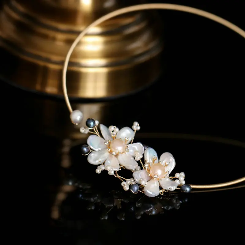SINZRY original design handmade Baroque freshwater pearl Elegant flower chokers necklace band for W
