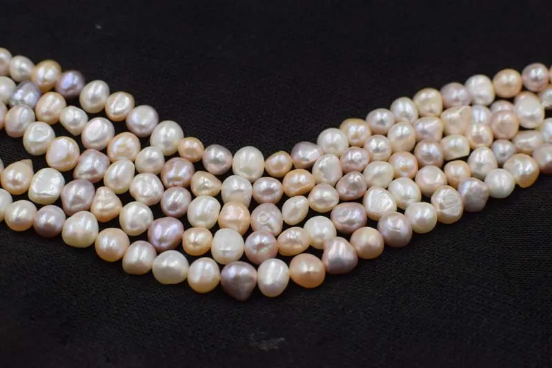 TOP 5strands loose beads freshwater pearl white/pink/purple flat baroque 7-9mm 15inch for making jewelr