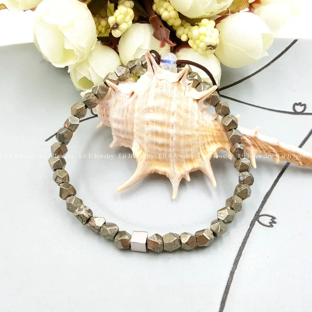Best Quality Lii Ji Natural PyriteMoonstone925 Sterling Silver Cube Fashion Jewelry For Women or Men