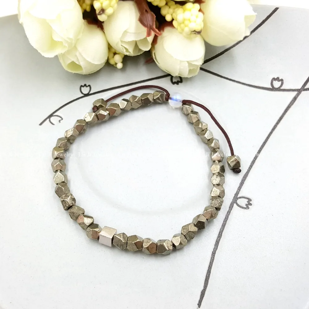 Lii Ji Natural PyriteMoonstone925 Sterling Silver Cube Fashion Jewelry For Women or Men