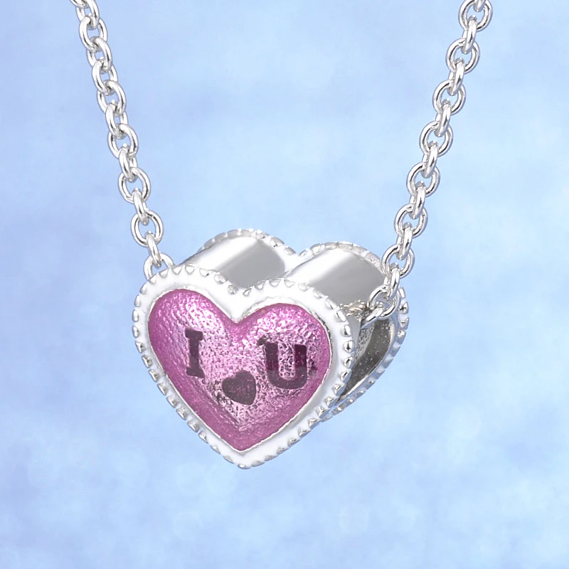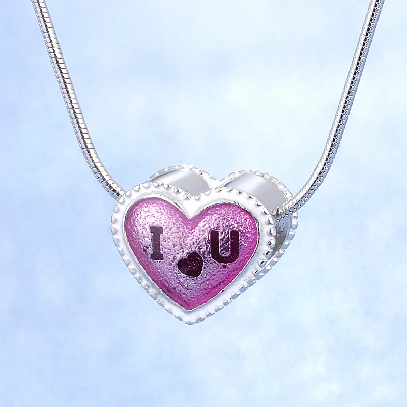 Best Seller Romantic Popular Handmade Heart Shape Enamel I Love You Letter Jewelry S925 Sterling Silver Snake/C