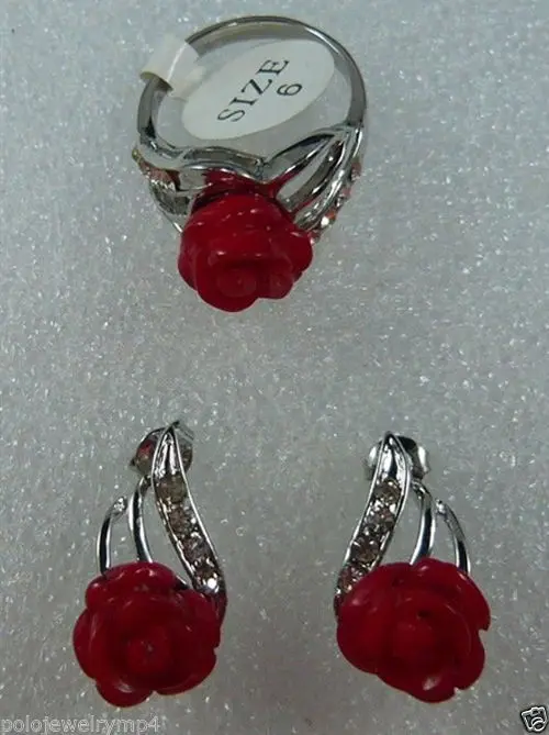 Best Women's cospay women's Hair full wigs Jewelry Heart Red gem Flower Stud Earring Ring Set AAA style