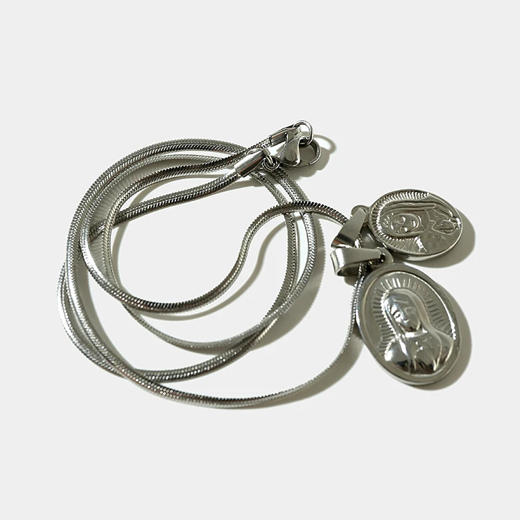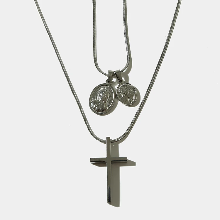 Golden Silver Small Cross and Matrona Mary Set Pendant Necklace Stainless Steel Hip Hop Trendy Jewe