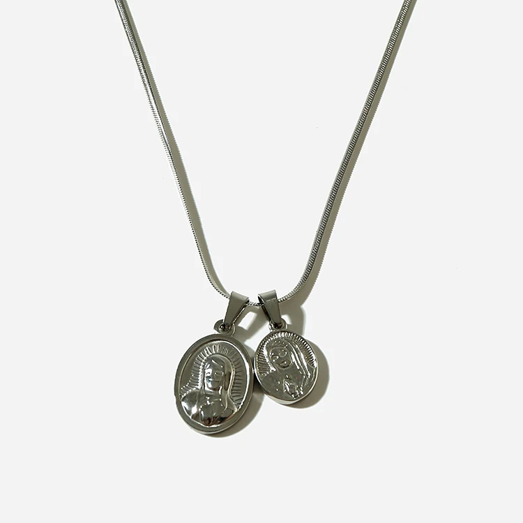 ORIGINAL Golden Silver Small Cross and Matrona Mary Set Pendant Necklace Stainless Steel Hip Hop Trendy Jewe