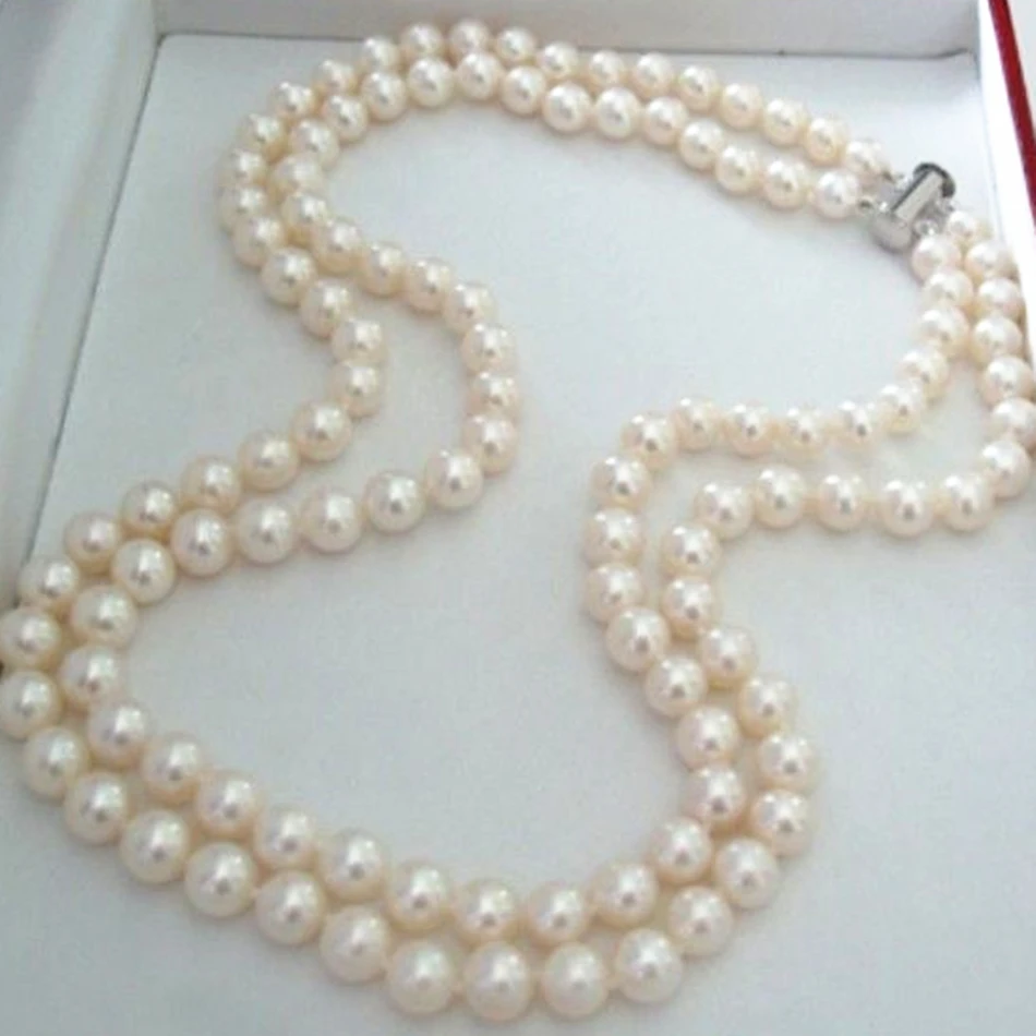 REVIEW TOP SELLER High quality natural freshwater cultured pearl 2 rows 7-8mm round beads necklace for women luxury a