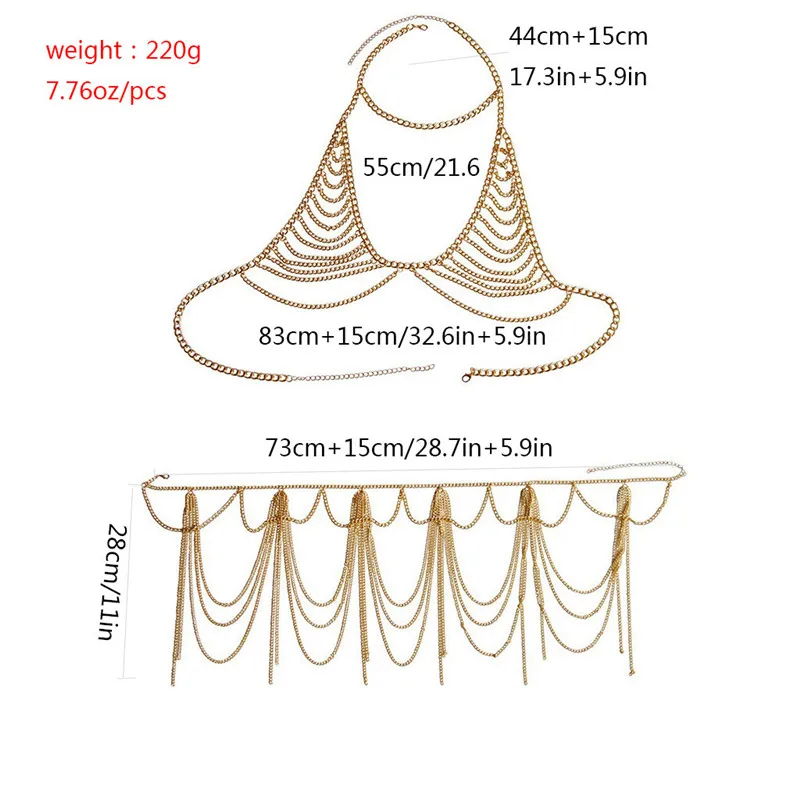 ORIGINAL Luxury Girls Sexy Club Body Chain Necklace Hollywood Silver Waist Chain Gold Sexy Summer Bikini Bod