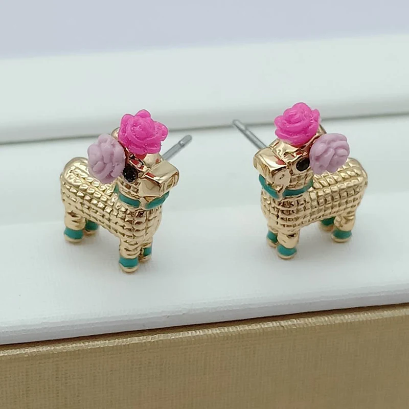 new earrings necklace jewelry set colorful wooden horse flower female jewelry
