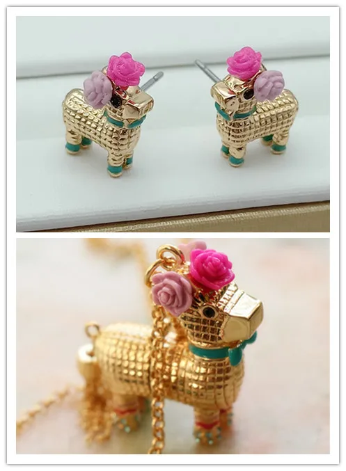 Review Top new earrings necklace jewelry set colorful wooden horse flower female jewelry