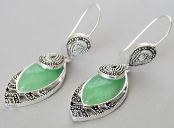 BEST women Fashion Jewelry 11.23 Silver Jewelry LIGHT GREEN gem Marcasite Teardrop Earrings Discount 35%